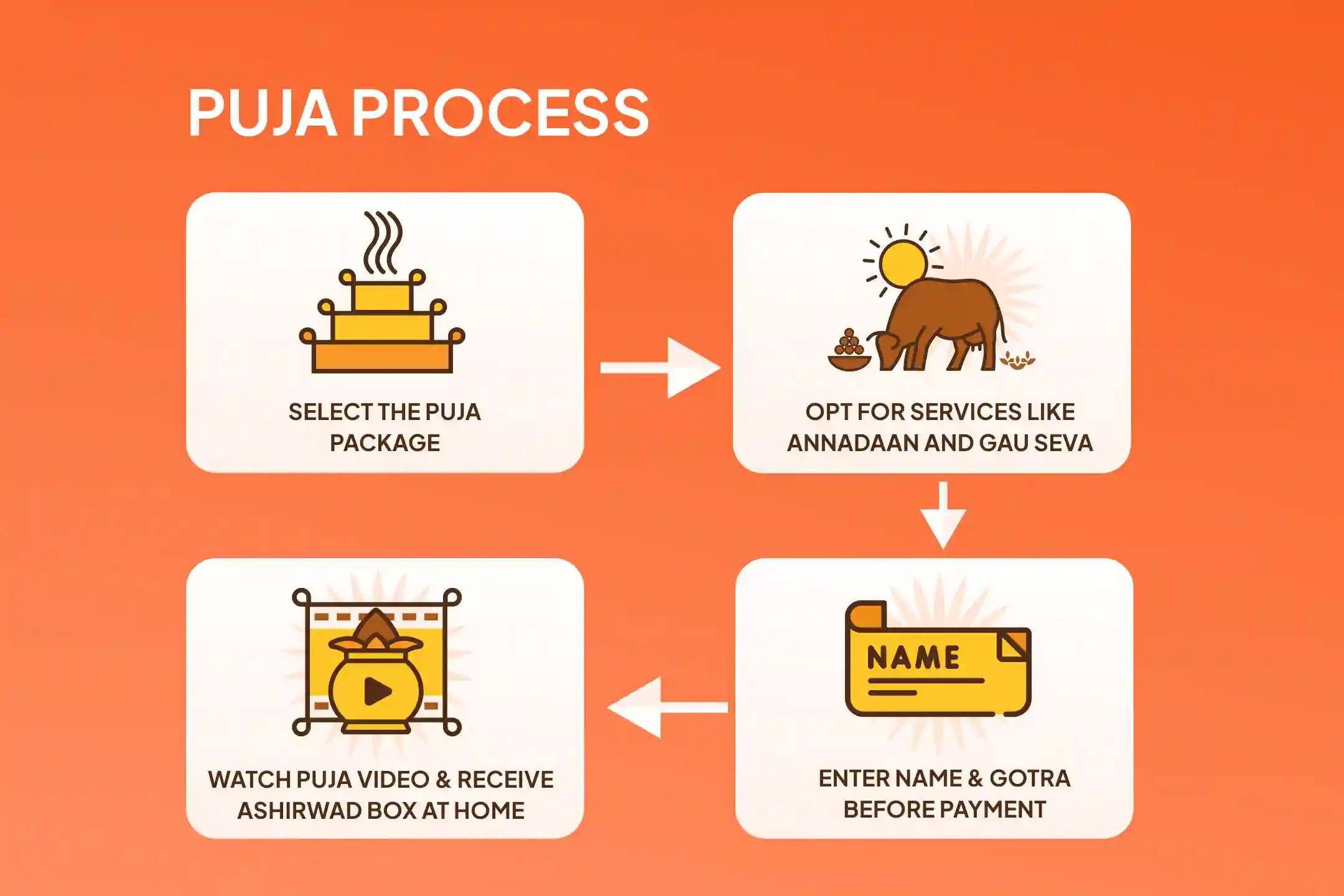Opt for additional offerings like Vastra Daan, Anna Daan, Gau Seva, or Deep Daan to be done in your name.