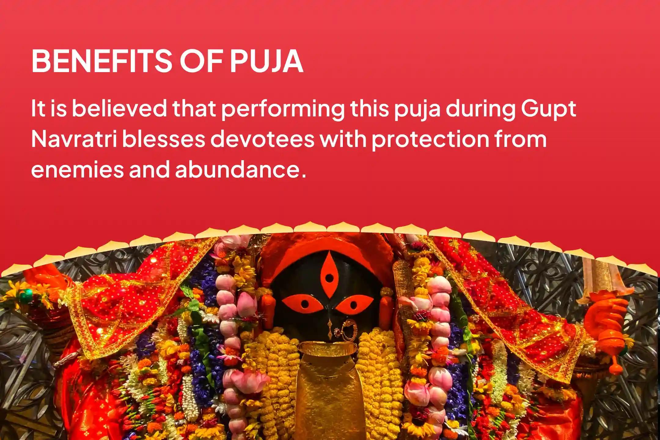 Tantric worship performed during Gupt Navratri awakens the divine consciousness of the goddess. Puja during this time is believed to quickly fulfill all types of desires—mental, material, or spiritual—and infuse new energy into life.