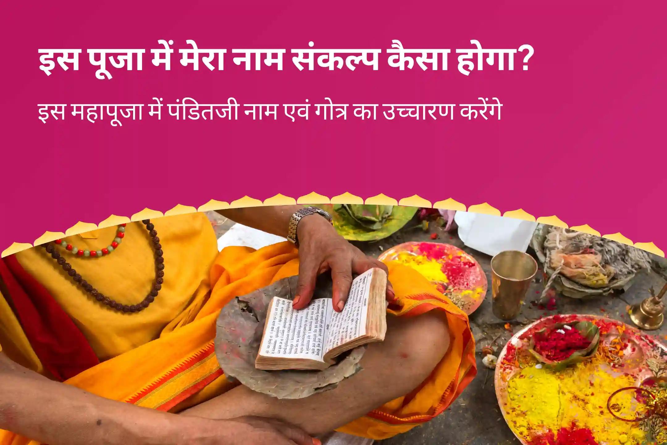 पंडित जी पूजा संकल्प के दौरान अन्य पूजा प्रतिभागियों के नाम के साथ आपके नाम एवं गोत्र का उच्चारण करेंगे।