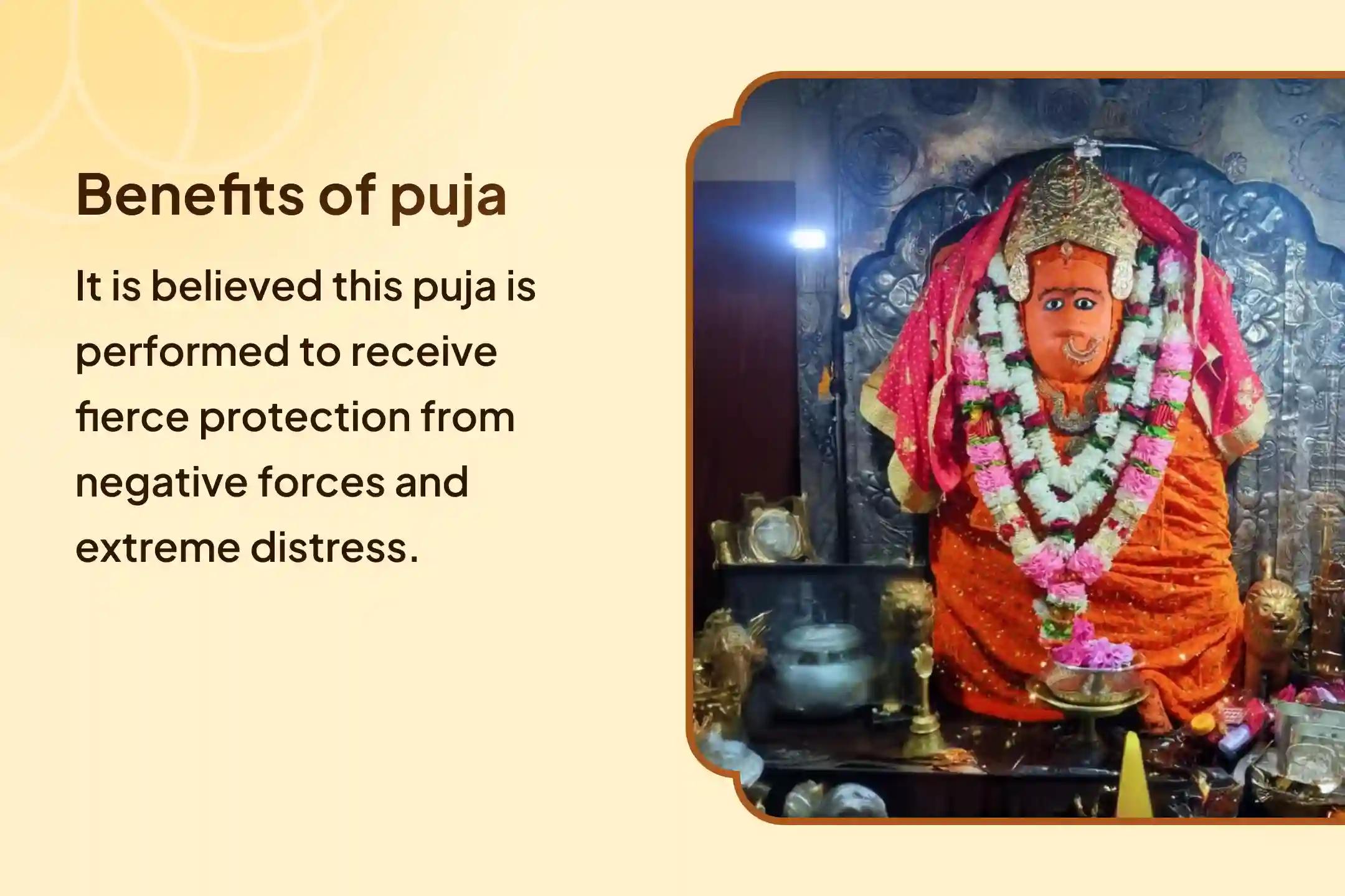 Worship on a Friday is especially significant for receiving the blessings of Maa Chamunda, the Goddess of Shakti. This ritual is performed to create a spiritual shield of protection, guarding you and your family from the threats of hidden or visible enemies, black magic, and any form of intense crisis.