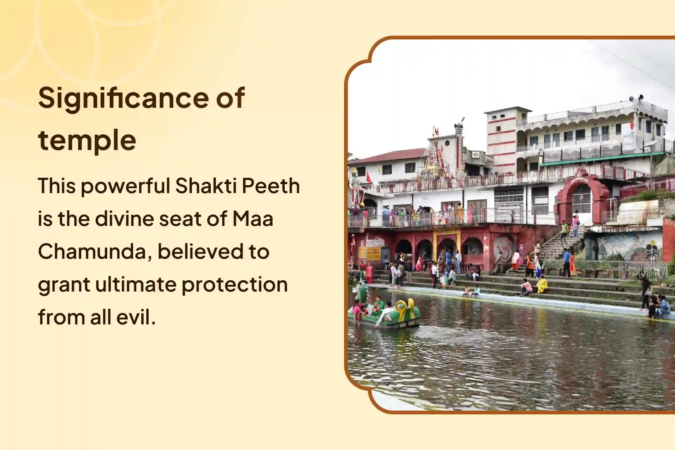 Chamunda Devi Shaktipeeth is Situated near Palampur in Kangra district, this prominent Shaktipeeth is dedicated to the fierce form of Goddess Durga, Chamunda Devi. It is believed that the feet of Sati fell here. Chamunda Devi destroyed the demons Chand and Mund, rescuing devotees from danger. The temple houses a powerful idol, and devotees fulfill their wishes through devotion and rituals. During Navratri, the site is especially vibrant with faith and devotion.