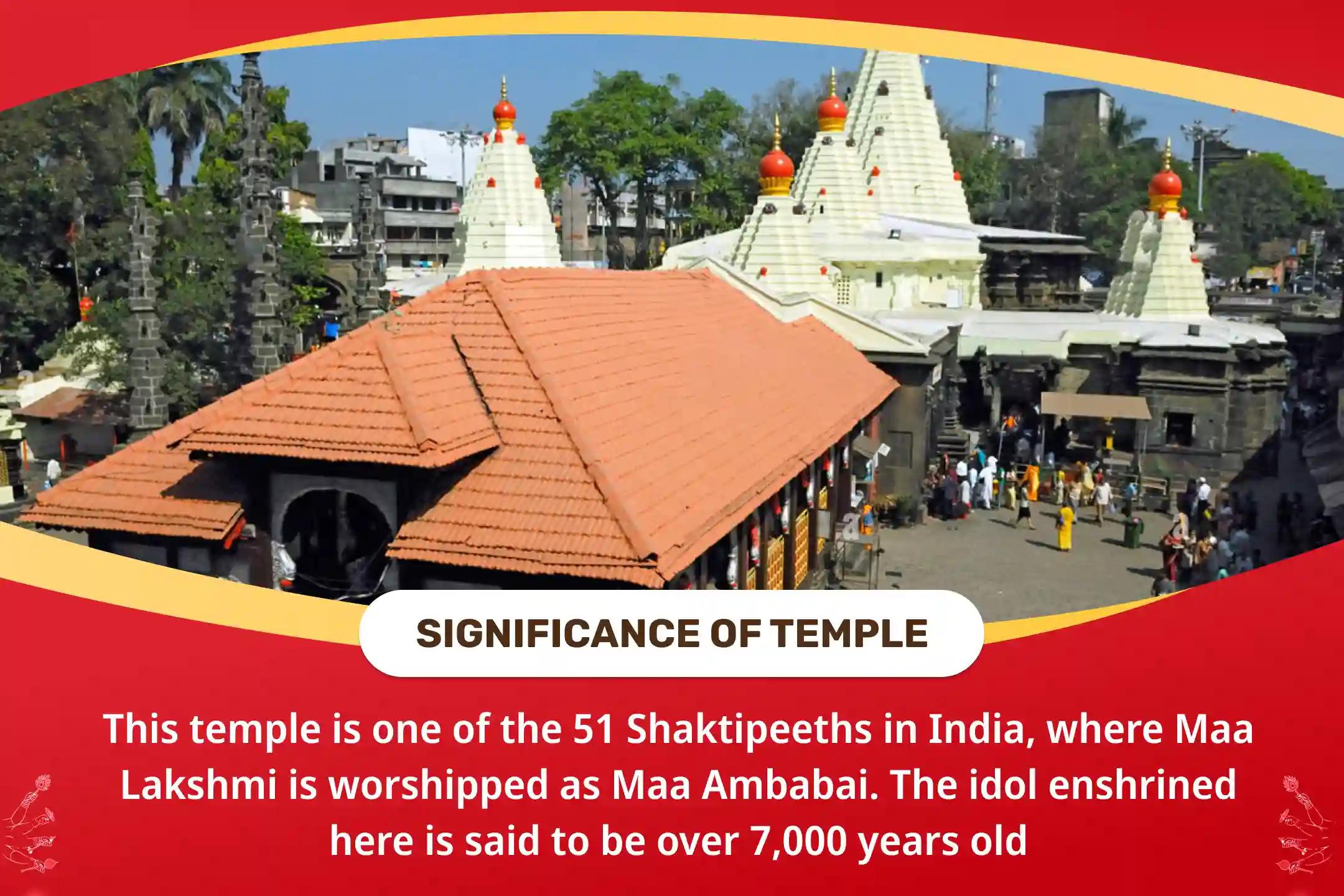 Goddess Lakshmi, seated in this temple, destroys financial constraints and poverty in the homes, families, and businesses of her devotees. It is said that by worshipping in this temple with true heart, Goddess Lakshmi fulfils all the wishes of her devotees. This is the reason why the worship performed at Shri Mahalakshmi Ambabai Temple is more important for maintaining economic prosperity.