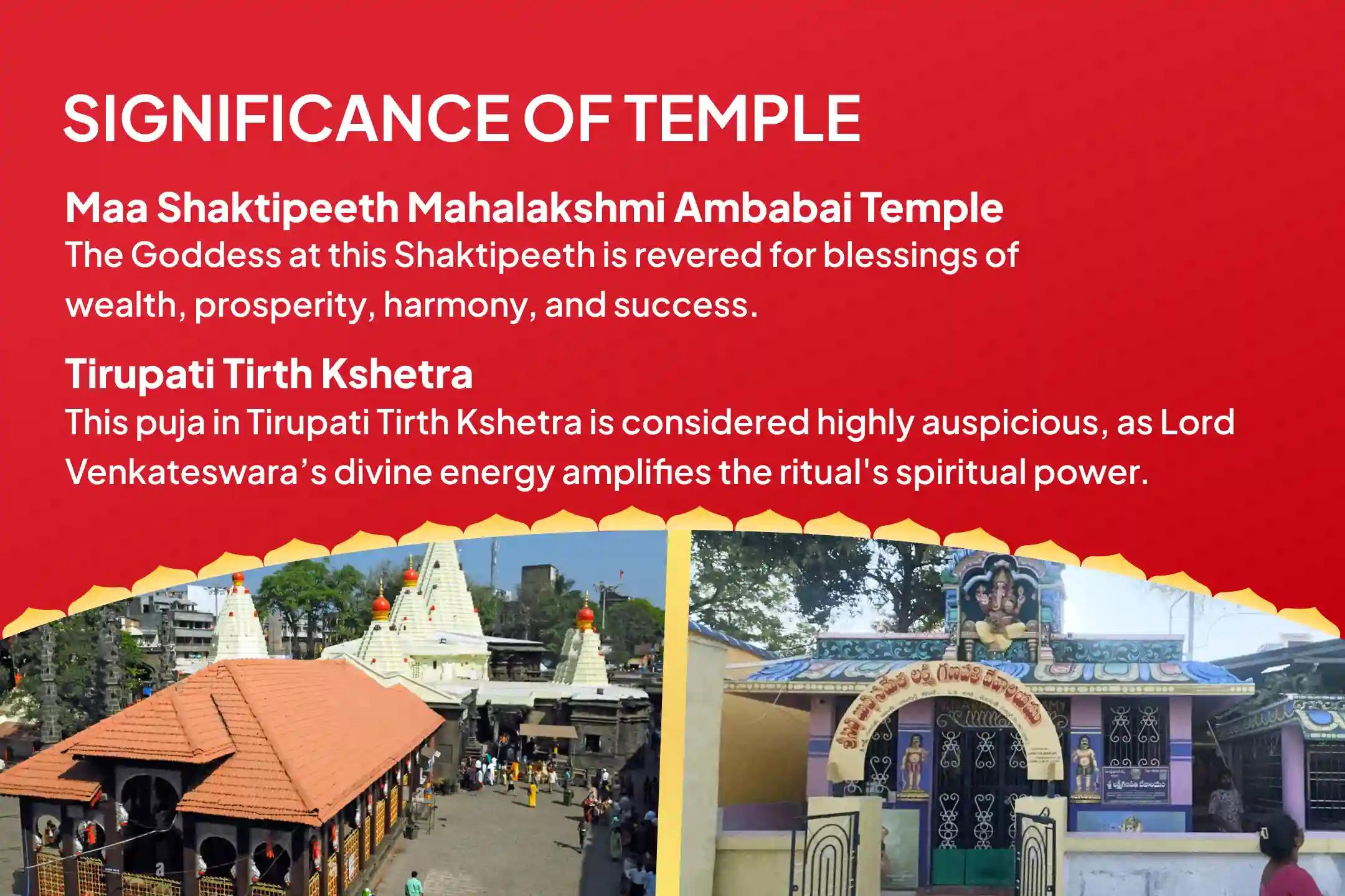 Participating in this powerful puja at two of the most sacred Sthals—Tirupati and Kolhapur—is believed to eliminate financial stagnancy, resolve karmic debts, and ensure lasting wealth. It is said that worship on Akshaya Tritiya ensures that fortunes continue to grow and do not diminish.