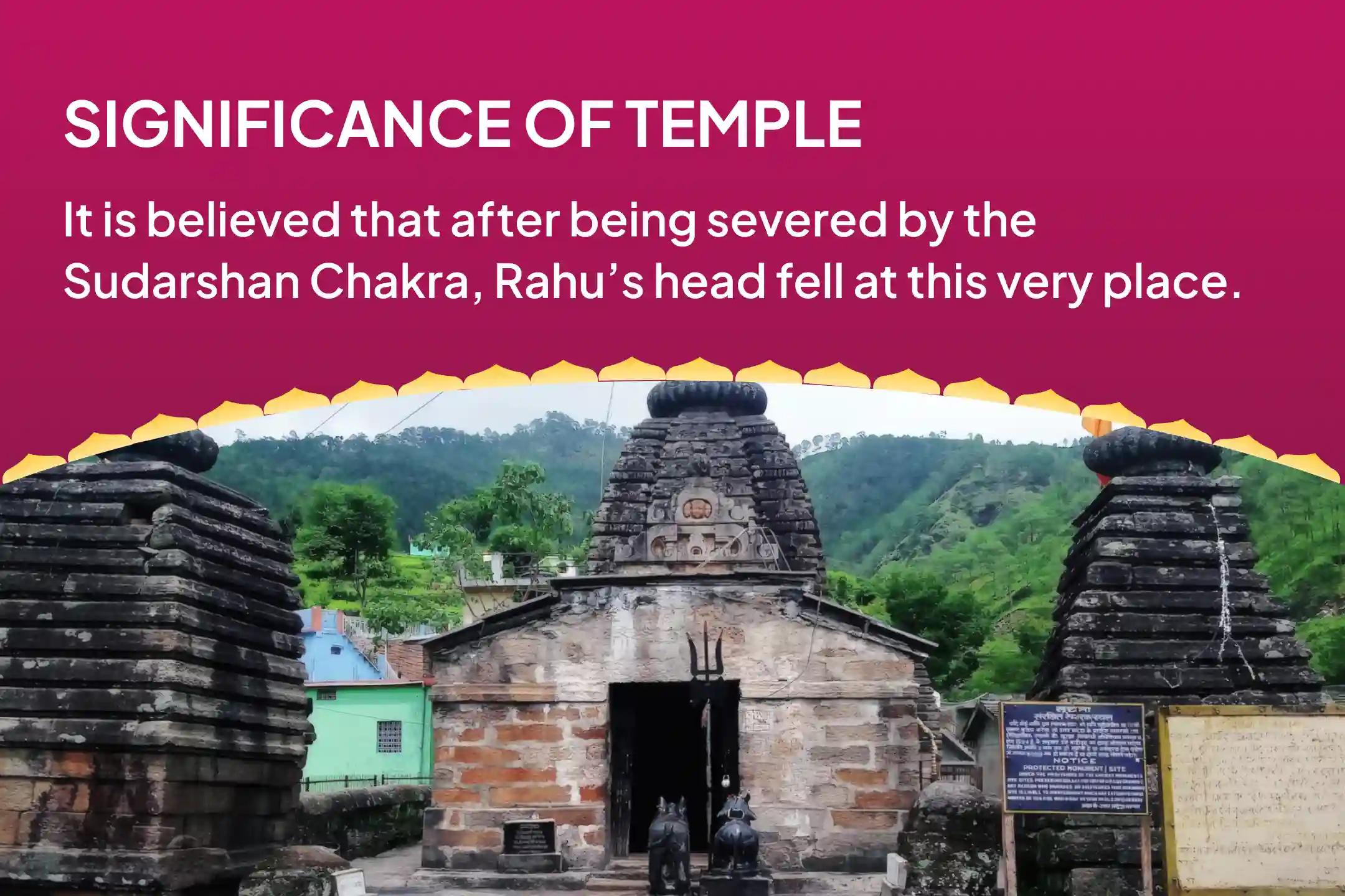 It is said that people worship at this temple to rid themselves of various doshas caused by Rahu. Special pujas are performed here to get relief from Kaal Sarp Dosh, Rahu-Ketu Dosh, and the effects of Rahu Mahadasha. Some believe the temple was established by Adi Shankaracharya, while another story attributes it to the Pandavas, who are believed to have built it during their Swargarohini Yatra to seek relief from Rahu Dosh and worship both Lord Shiva and Rahu.