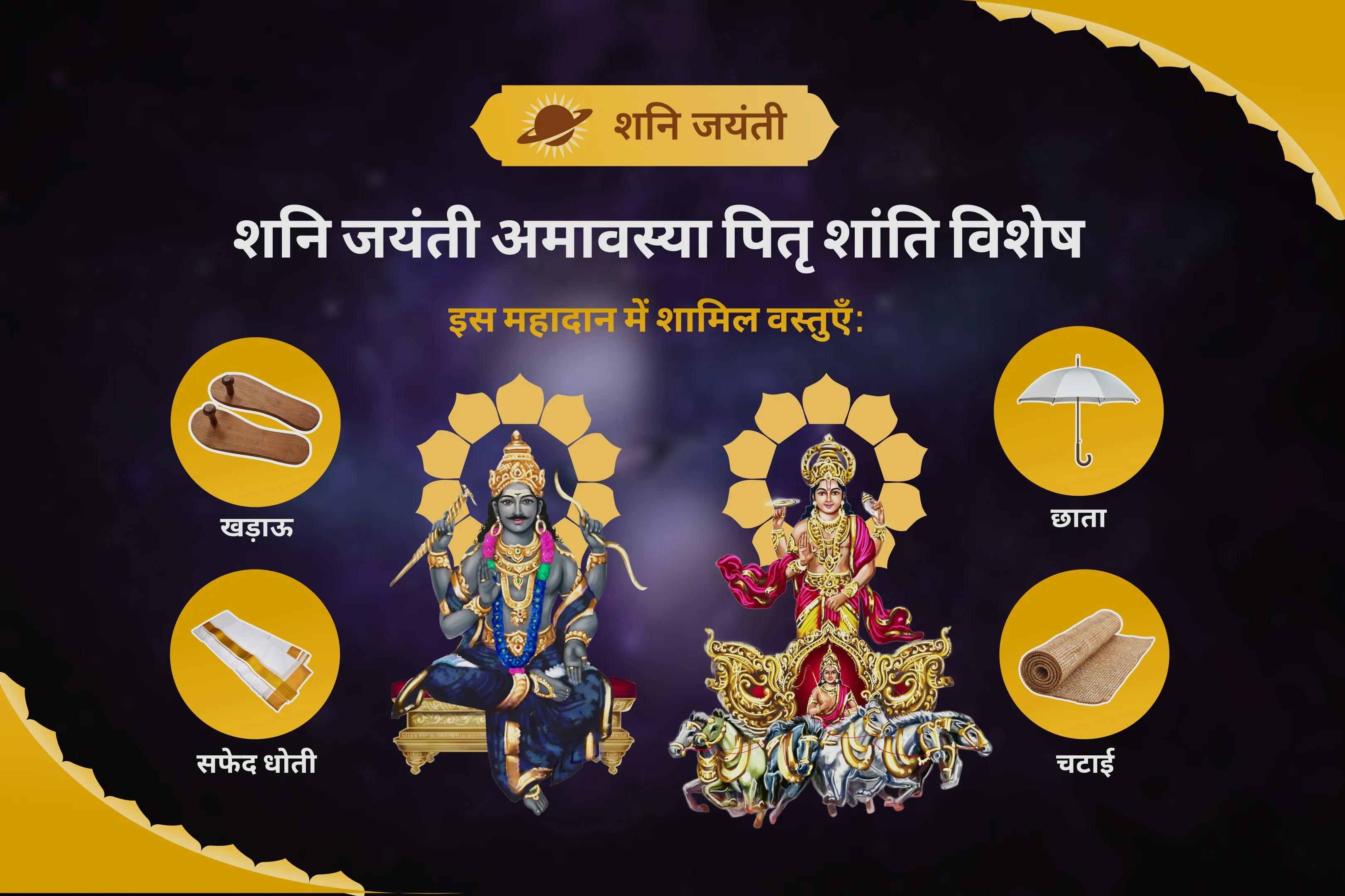 पैतृक कर्मों के निवारण एवं पारिवारिक संबंधों को मजबूत करने के लिए शनि जयंती अमावस्या पितृ शांति विशेष सूर्य-शनि दोष निवारण पूजा एवं पितृ महादान कुंजिका अर्पण