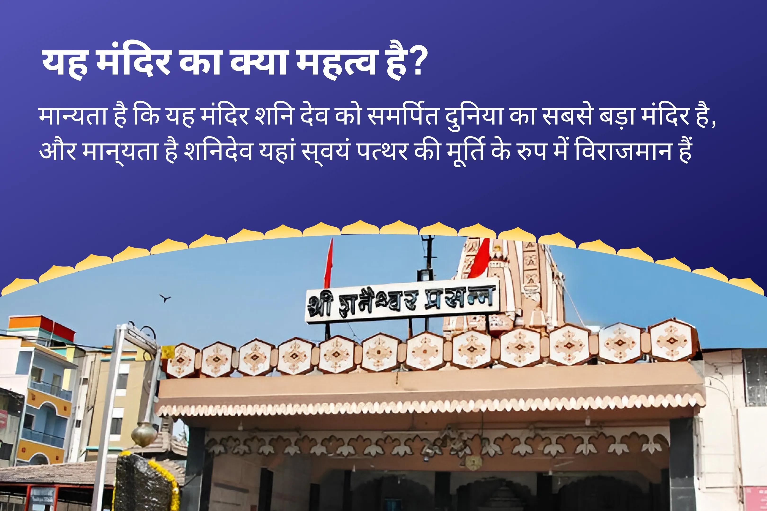 श्री शनेश्वर देवस्थान शनि शिंगणापुर का यह मंदिर पूरे भारत में बेहद प्रसिद्ध है। मंदिर के अलावा, शिंगणापुर एक छोटा सा गाँव है जहां पूरे गाँव में किसी भी घर में दरवाजे नहीं हैं और इसके बावजूद गांव में चोरी भी नहीं होती। मान्यता है कि शनिदेव द्वारा सुरक्षित गांव में चोर नहीं कर सकते और जो कोई भी चोरी करने का प्रयास करता है उसे दैवीय दंड मिल जाता है। कहते हैं कि यहां शनि की प्रतिमा के दर्शन मात्र से शनि दोष दूर हो जाता है।