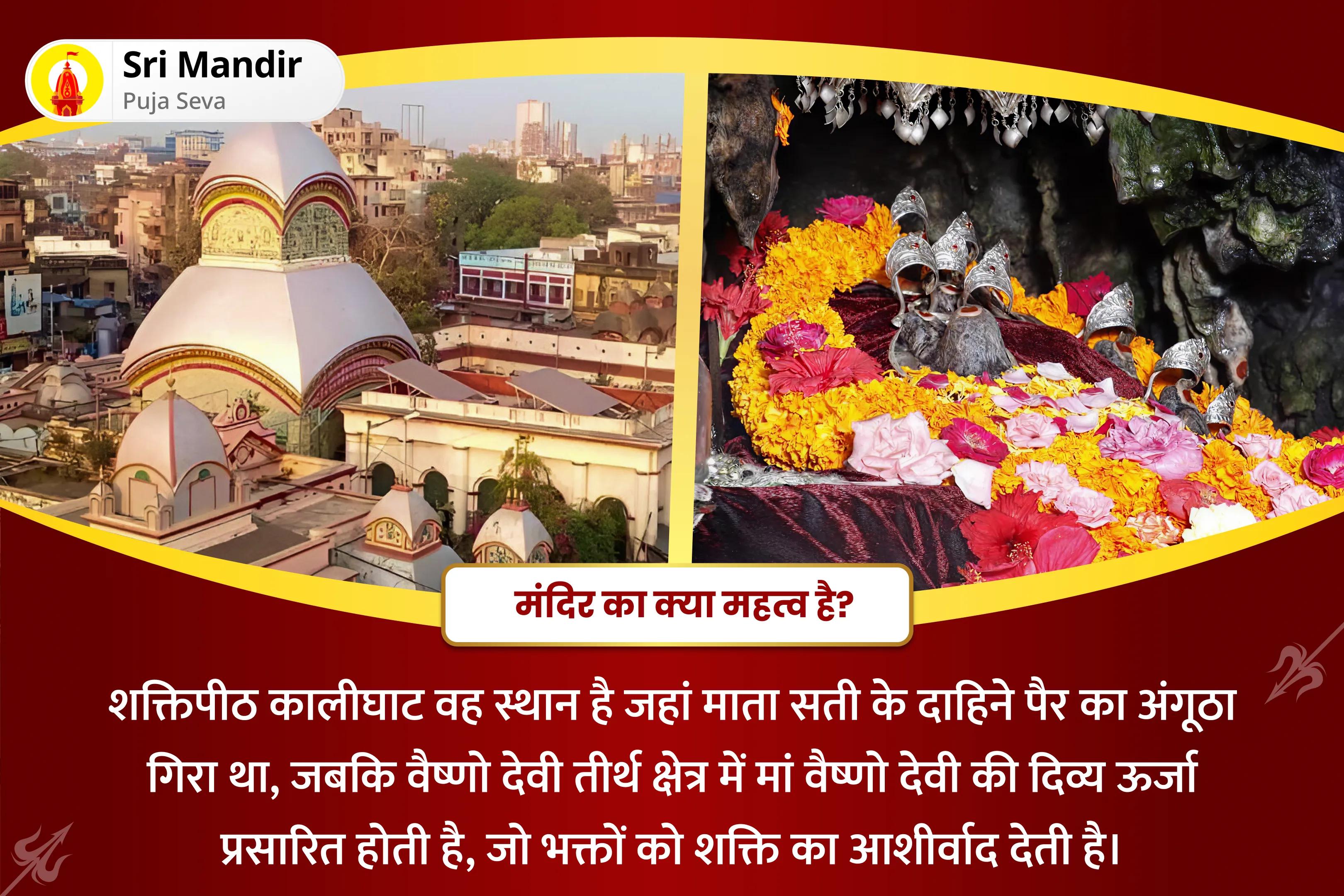 рдирд╡рд░рд╛рддреНрд░рд┐ рдорд╛рдБ рджреБрд░реНрдЧрд╛ рдХреА рджрд┐рд╡реНрдп рд╢рдХреНрддрд┐рдпреЛрдВ рдХреЛ рдЖрд╣реНрд╡рд╛рди рдХрд░рдиреЗ рдХрд╛ рд╕рдмрд╕реЗ рд╢реБрдн рд╕рдордп рд╣реИред рдЗрд╕ рдкрд╛рд╡рди рдЕрд╡рд╕рд░ рдкрд░, рд╢реНрд░реА рдордВрджрд┐рд░ рдЖрдкрдХреЛ рд╢рдХреНрддрд┐рдкреАрда рдХрд╛рд▓реАрдШрд╛рдЯ рдордВрджрд┐рд░ рдореЗрдВ рд╕рдкреНрддрдореА, рдЕрд╖реНрдЯрдореА рдФрд░ рдирд╡рдореА рдХреЗ рджреМрд░рд╛рди рдЖрдпреЛрдЬрд┐рдд рдкрд╡рд┐рддреНрд░ 3 рджрд┐рд╡рд╕реАрдп рдкреВрдЬрд╛ рдореЗрдВ рднрд╛рдЧ рд▓реЗрдиреЗ рдХрд╛ рдПрдХ рдЕрдиреВрдард╛ рдЕрд╡рд╕рд░ рдкреНрд░рджрд╛рди рдХрд░рддрд╛ рд╣реИред рдпрд╣ рдкреВрдЬрд╛ рджрд┐рд╡реНрдп рд╕реБрд░рдХреНрд╖рд╛ рдкреНрд░рд╛рдкреНрдд рдХрд░рдиреЗ, рдмрд╛рдзрд╛рдУрдВ рдХреЛ рджреВрд░ рдХрд░рдиреЗ рдФрд░ рдЖрдзреНрдпрд╛рддреНрдорд┐рдХ рд╡ рднреМрддрд┐рдХ рдХрд▓реНрдпрд╛рдг рдХреЗ рд▓рд┐рдП рдХреА рдЬрд╛рддреА рд╣реИред рддреАрдиреЛрдВ рджрд┐рдиреЛрдВ рддрдХ рдЕрдЦрдВрдб рдЬреНрдпреЛрддрд┐ рдЬрд▓рддреА рд░рд╣реЗрдЧреА, рдЬреЛ рдЕрдЯреВрдЯ рднрдХреНрддрд┐ рдФрд░ рдИрд╢реНрд╡рд░реАрдп рдЖрд╢реАрд░реНрд╡рд╛рдж рдХрд╛ рдкреНрд░рддреАрдХ рд╣реЛрдЧреАред рдЗрд╕рдХреЗ рдЕрд▓рд╛рд╡рд╛, рдкреНрд░рддреНрдпреЗрдХ рджрд┐рди 1,25,000 рдирд╡ рдЪрдВрдбреА рдордВрддреНрд░реЛрдВ рдХрд╛ рдЬрд╛рдк рдХрд┐рдпрд╛ рдЬрд╛рдПрдЧрд╛ред рд╕рд╛рде рд╣реА, рдкреНрд░рддрд┐рджрд┐рди рдорд╛рдБ рджреБрд░реНрдЧрд╛ рдХреЛ рд╕рдорд░реНрдкрд┐рдд рдПрдХ рдкрд╡рд┐рддреНрд░ рдЧреНрд░рдВрде рдХрд╛ рдкрд╛рда рдХрд┐рдпрд╛ рдЬрд╛рдПрдЧрд╛, рдЬрд┐рд╕рд╕реЗ рднрдХреНрддреЛрдВ рдкрд░ рджреЗрд╡реА рдХреА рдХреГрдкрд╛ рдФрд░ рдЕрдзрд┐рдХ рдмрдврд╝реЗрдЧреАред