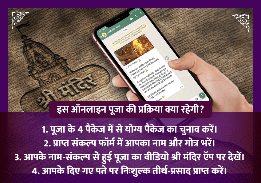 A video of the puja, including your name and sankalp, will be shared with you, and the holy Prasad will be sent to the address provided by you.