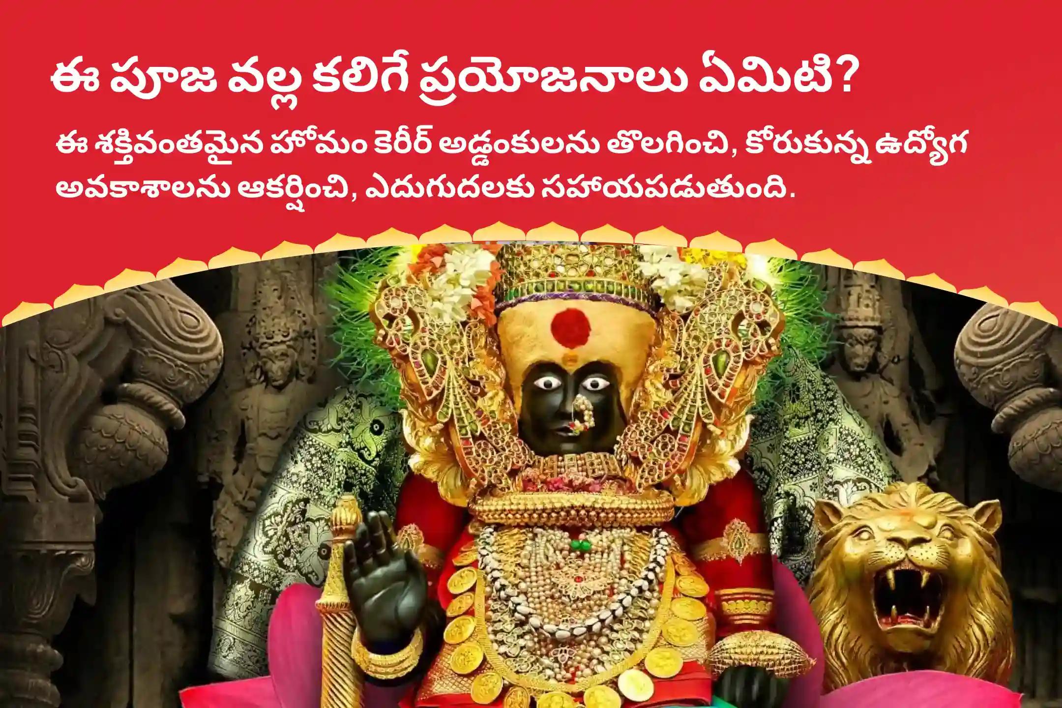 మీరు కోరుకున్న ఉద్యోగాన్ని సాధించడానికి మరియు కెరీర్ ని స్థిరపరుచుకోవడానికి శక్తివంతమైన ఆలయంలో శక్తివంతమైన పూజ మరియు ఆర్థిక స్థిరత్వం కోసం హోమంలో పాల్గొనండి.