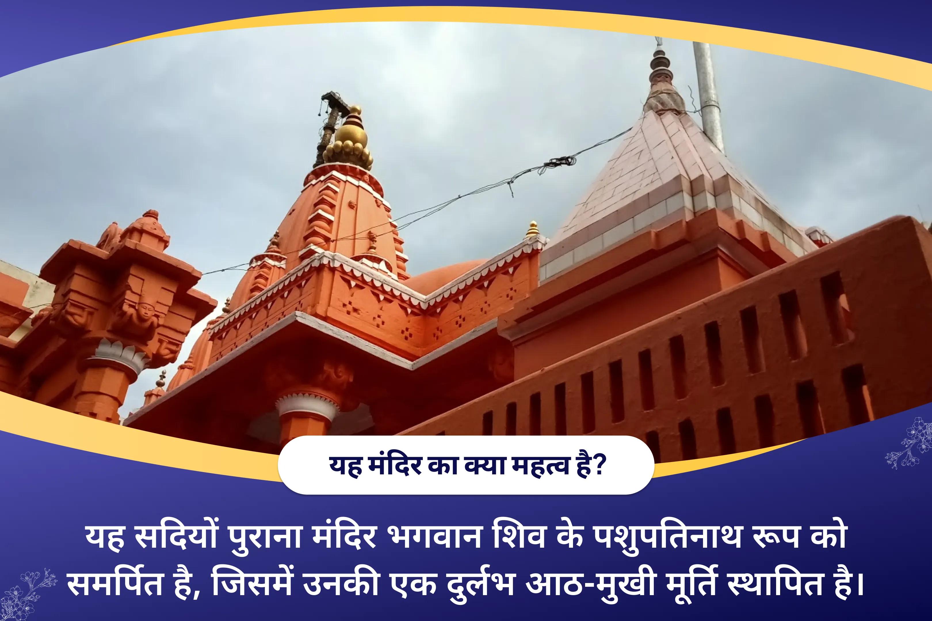 प्राचीन पशुपतिनाथ मंदिर सदियों पुराना है। यह भगवान शिव के एक रूप भगवान पशुपतिनाथ को समर्पित है। मंदिर में भगवान पशुपतिनाथ की आठ मुख वाली मूर्ति है, जिसे दुर्लभ और पवित्र माना जाता है। उज्जैन में पवित्र क्षिप्रा नदी के तट पर स्थित, यह मंदिर धार्मिक अनुष्ठानों का केंद्र है, विशेष रूप से भगवान शिव को समर्पित शुभ अवसरों जैसे महाशिवरात्रि और श्रावण मास में इस मंदिर में कई धार्मिक अनुष्ठान होते हैं। माना जाता है कि इस प्राचीन मंदिर में भगवान पशुपतिनाथ की पूजा करने से भक्तों को सुख, समृद्धि और आध्यात्मिक संतुष्टि मिलती है।